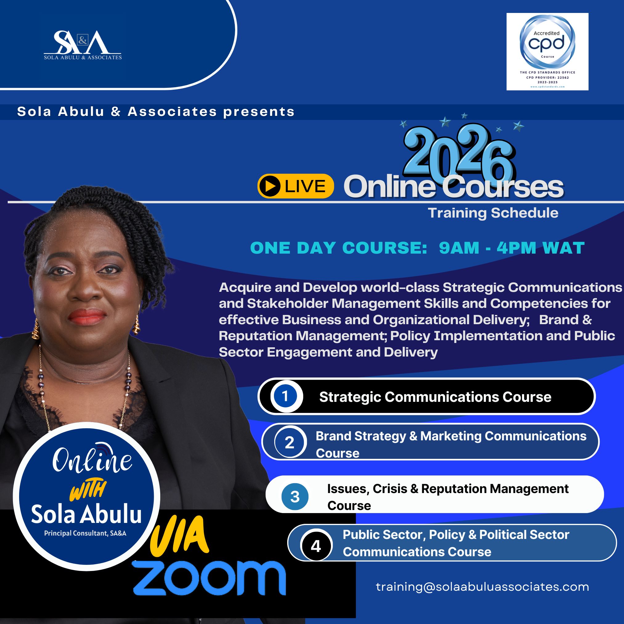Please note that these online courses are delivered via ZOOM with Sola Abulu as the Course Instructor/Lead Facilitator.